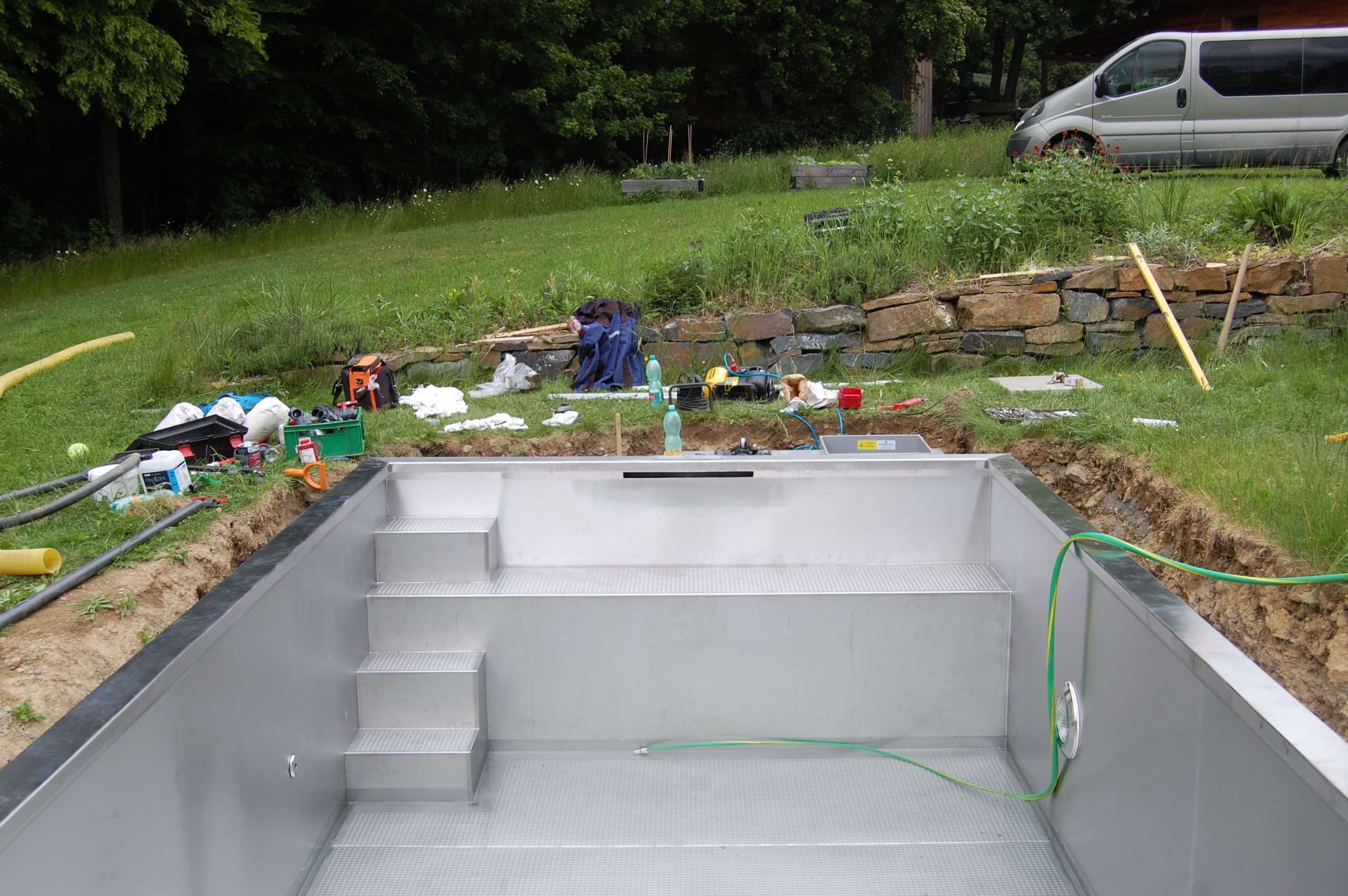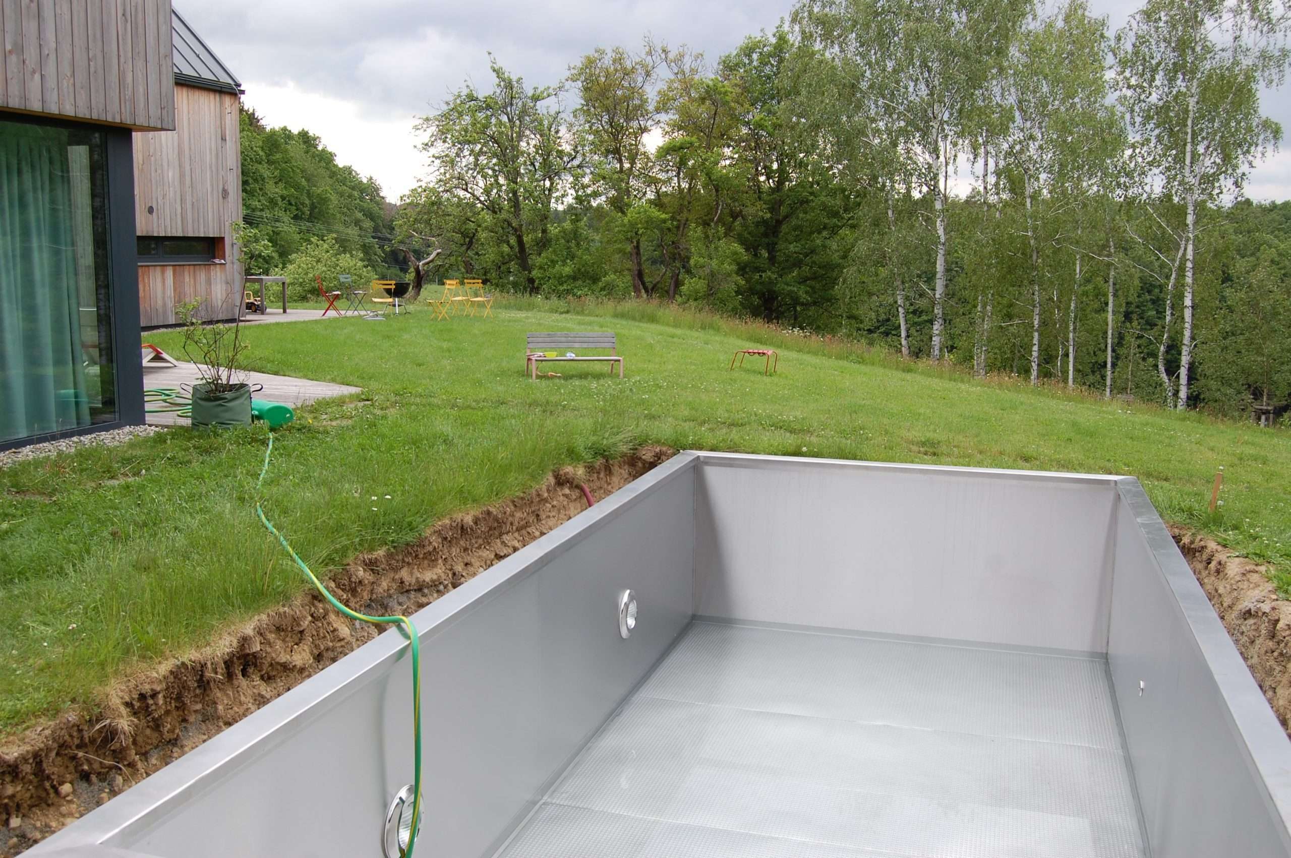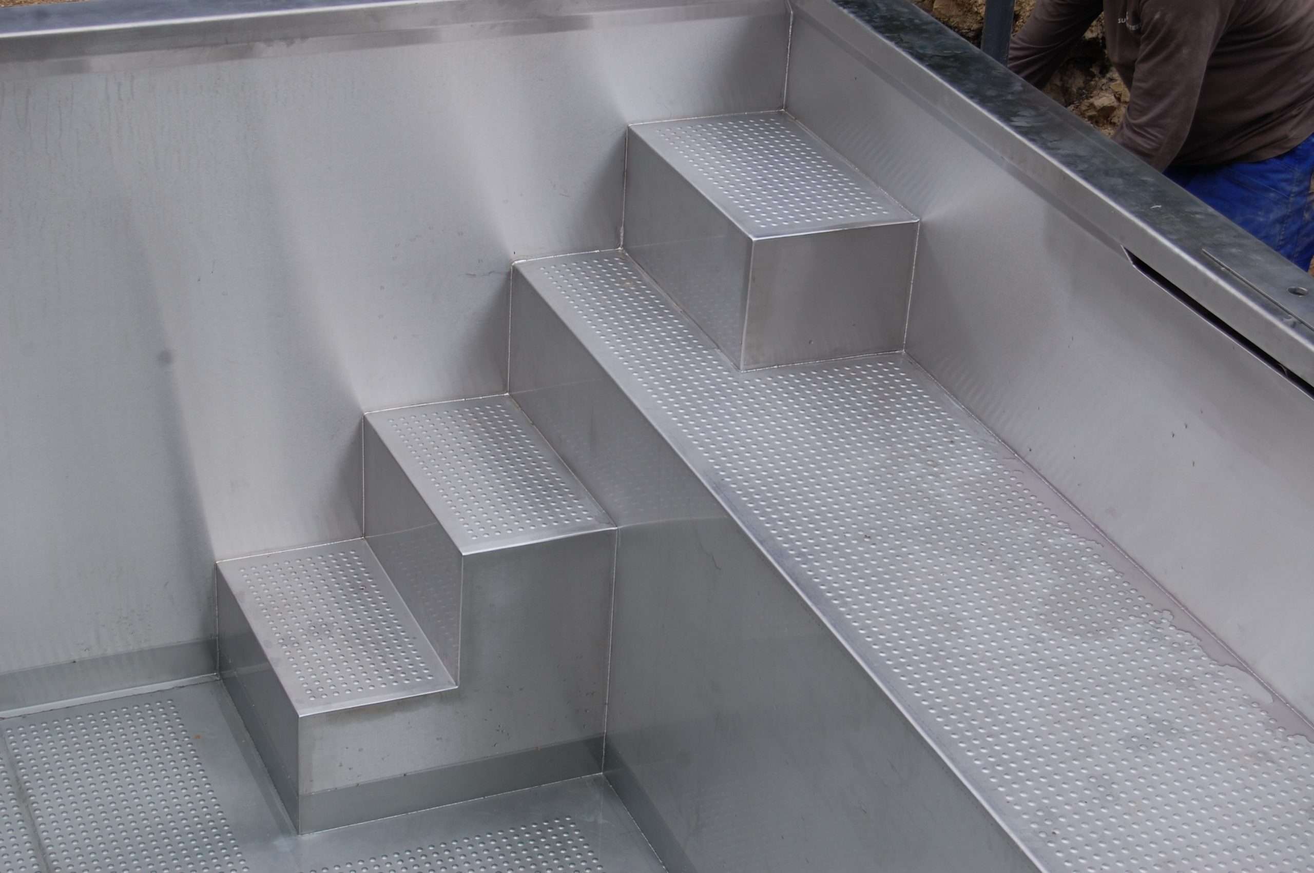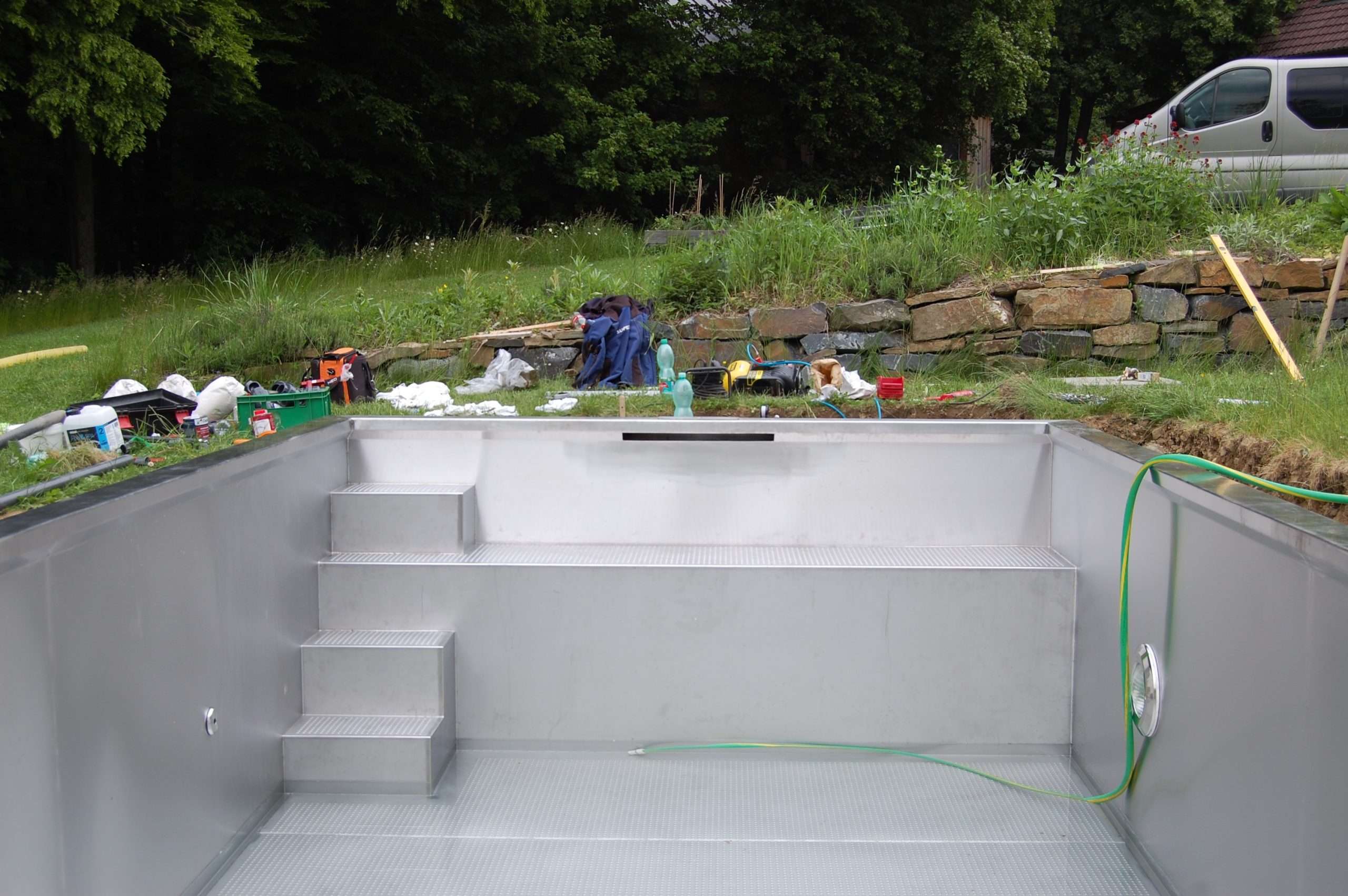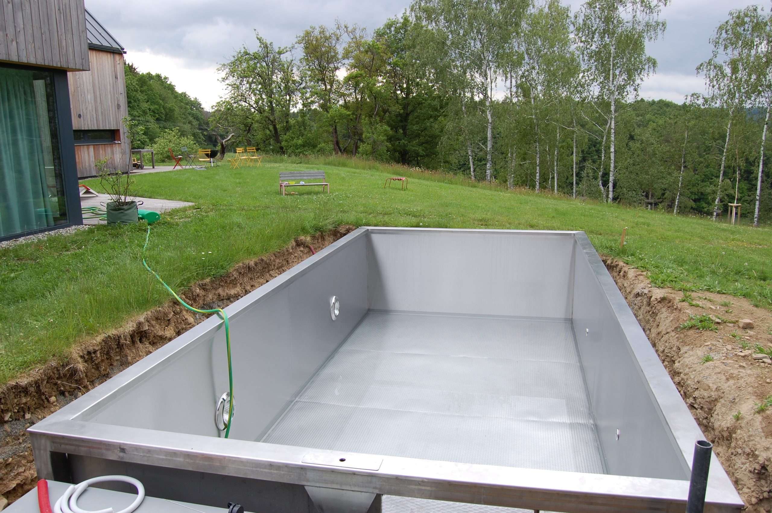 Nerezový bazén sa montuje do samonosnej rámovej konštrukcie, stavebná príprava podľa našej technickej dokumentácie pre štandardné bazény. Kompletne zvárané metódou TIG s kapilárnou skúškou. Materiál AISI 316L (DIN 1.4404).